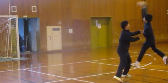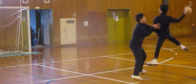 9:10 体育館でハンドボール部が活動中。
