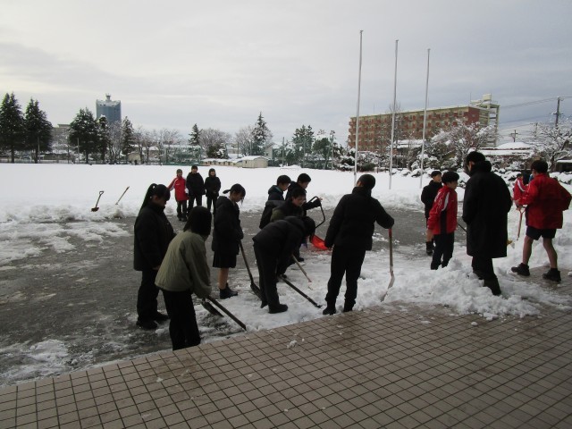 1月26日(月)放課後も大活躍! 公開日 2026/01/26 更新日 2026/01/26 学校だより 放課後も奥中生が大活躍! 陸上部員が生徒玄関前と駐車場の除雪をしていました。階段が広くなり、アスファルトの雪もなくなり、とっても歩きやすくなりました。ありがとう! また、生徒玄関で掲示物を貼っていたら、「手伝います!」の声。サッカー部が集まってきて、みんなで協力して掲示終了。ありがとう! 自ら進んで行動する奥中生がいっぱいです。