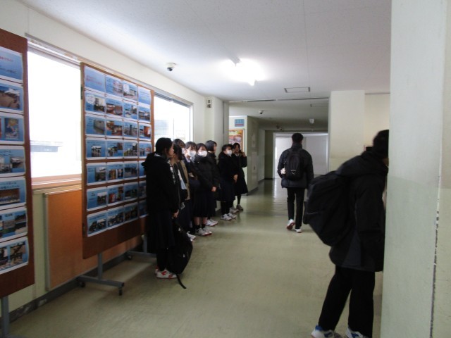 今朝は生徒玄関で、美術部が「部活動あいさつリレー」に参加していました。挨拶のバトンがつながっています。