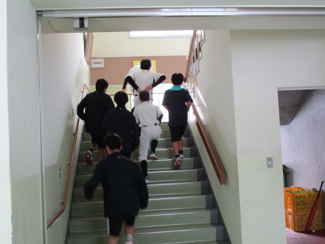 休日の部活動、校舎内を走ったり、トレーニングをしたりと元気に活動しています。