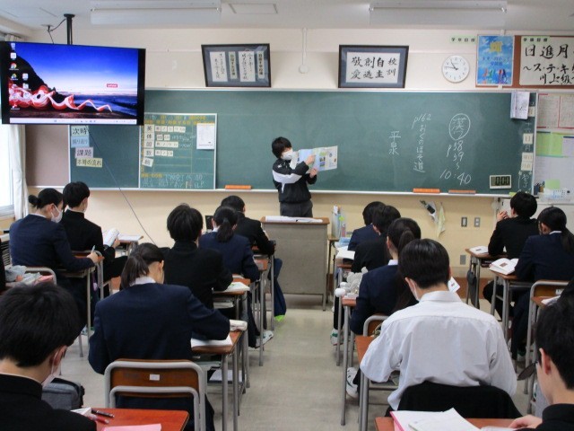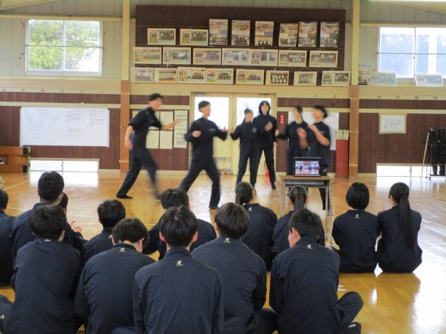 4組は国語「奥の細道」について学習しています。5組は保険体育で、ダンスの発表会をしていました。みんな楽しく表現活動に取り組んでいました。