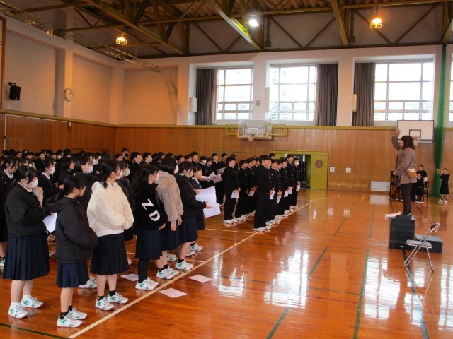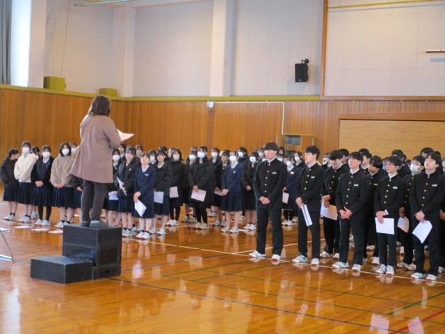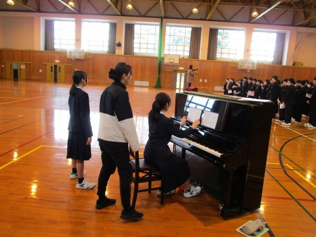 3年生の6限は、卒業式の合唱の練習でした。音楽科の先生から指導を受けながら繰り返し歌い込みました。