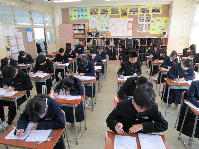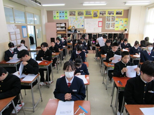 2月24日(火) 2学年 学年末考査 1日目 公開日 2026/02/24 更新日 2026/02/24 2学年 「学年末考査」が始まりました。2学年の最初の受検教科は「技術・家庭科」です。写真 上:問題用紙の配布の様子 下:開始!