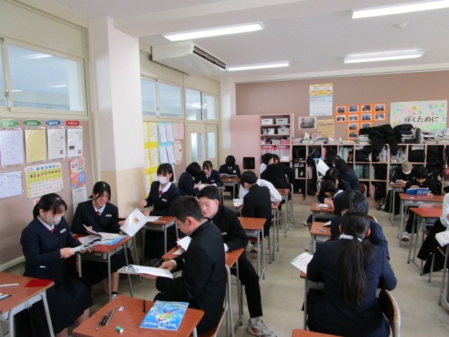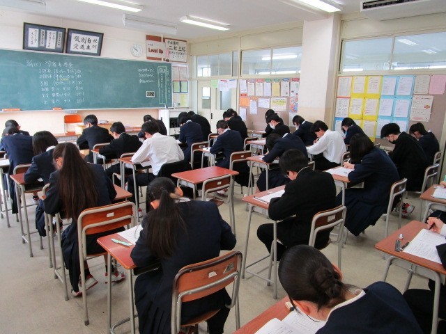 2月24日(火) 2学年 学年末考査 1日目 その2 公開日 2026/02/24 更新日 2026/02/24 2学年 9:42 2年生の2限目の受検教科「保健体育科」の時間は40分間です。そのため教科書で最後の確認を行っています。9:55受検の様子。