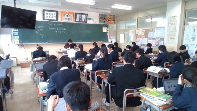 1組は理科、2組と3組は英語でした。3組は英語でスピーチしていました。