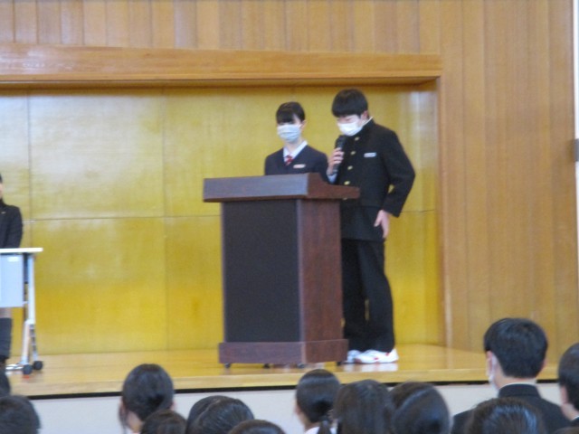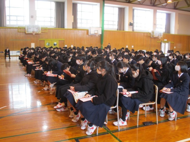 3月6日(金) 2学年「先輩に学ぶ講演会」 その2 公開日 2026/03/06 更新日 2026/03/06 2学年 あらかじめ集められたアンケートに基づいた先輩方への質問。中学校生活と高校生活の違いは?高校ではどのような勉強をするのですか?3年生の時、どのような受験勉強をしていたのですか?動画などメディアとの付き合い方は?写真 上:質問をする司会者 中:真摯に答えてくれる先輩 下:熱心に話を聴いたりメモをとる2年生。
