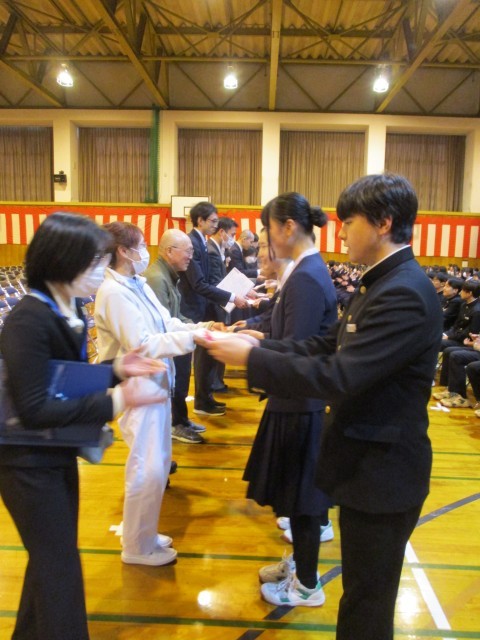 卒業式予行後 3年生から教職員へのあいさつが行われました。