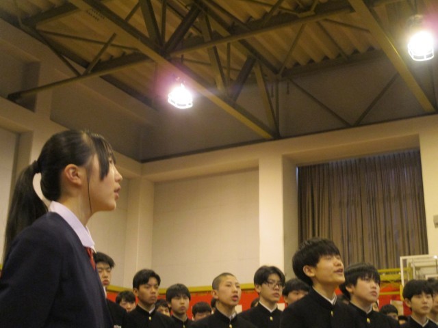 在校生による3年生を送る歌「空高く」が体育館に響きます♪