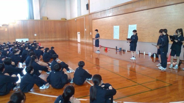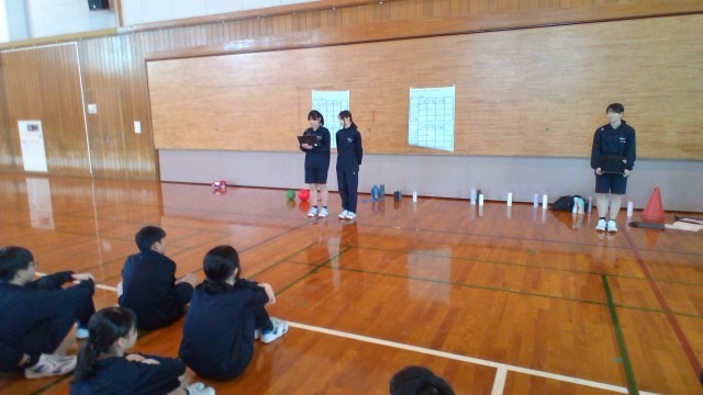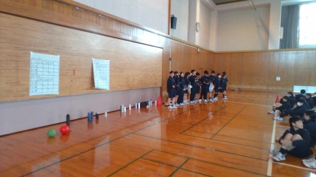 3月16日(月) 1年生 5限の様子 その1 公開日 2026/03/17 更新日 2026/03/16 1学年 体育館で学年生徒会主催でドッジボール大会が開催されました。初めに代表の挨拶、次にルール説明が行われました。
