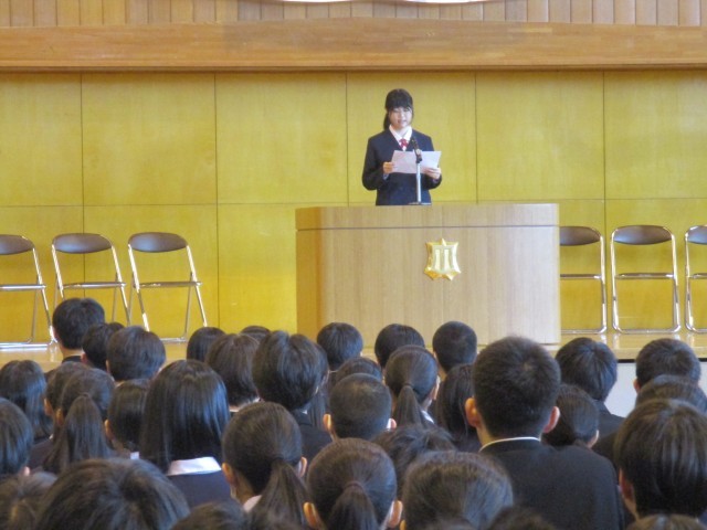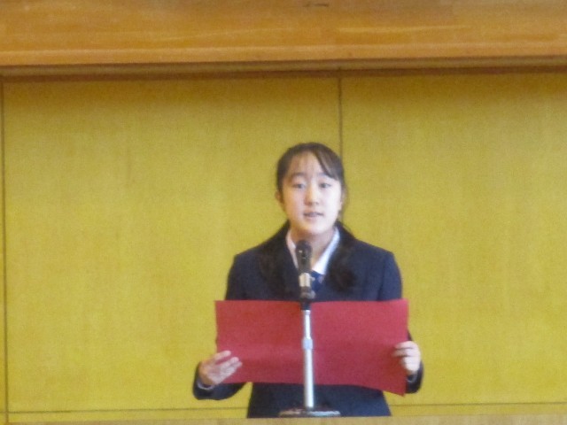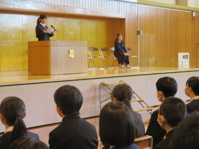 修了式に先立って1,2学年代表による意見発表が行われました。