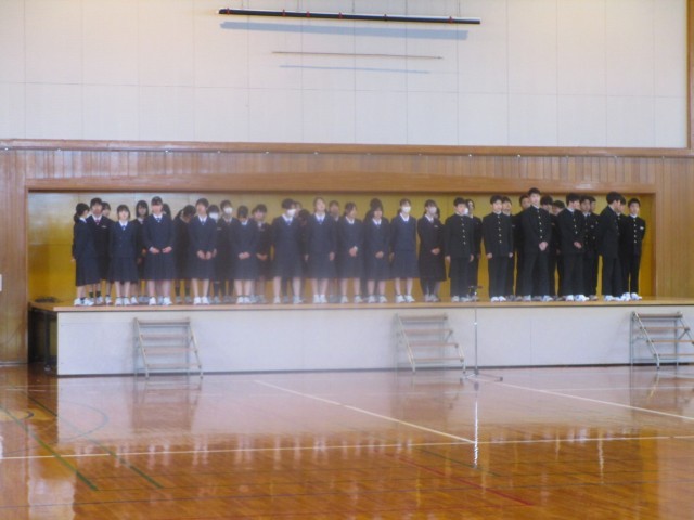 4月9日(木) 入学式に向けて その1 公開日 2026/04/09 更新日 2026/04/09 3学年 5限2、3年生は明日の入学式で歌う歌の練習を行いました。入学式合唱隊(写真:上)の指揮で1年生のために歌いました。