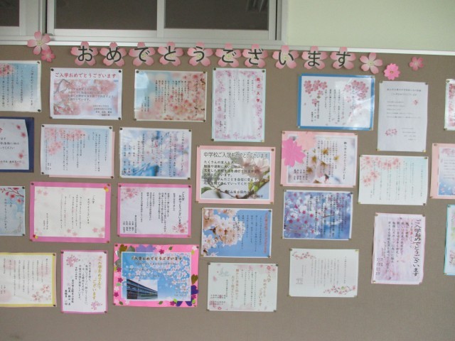 入学式の祝電について 公開日 2026/04/15 更新日 2026/04/15 学校だより 入学式でも紹介しましたが、たくさんの祝電をいただきました。4月28日(火)の授業参観が終わるまで、図書室前廊下に掲示してありますのでご覧ください。
