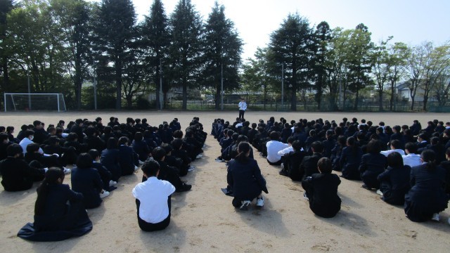 4月16日(木) 避難訓練 その2 公開日 2026/04/16 更新日 2026/04/16 学校だより 左は全員の所在を確認し、学年主任が報告をしている様子です。右は避難訓練の講評を真剣に聞いている様子です。
