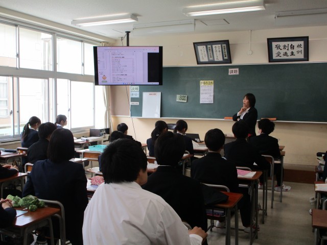 下:3年5組 技術・家庭科 家庭分野 3年生になって最初の授業。