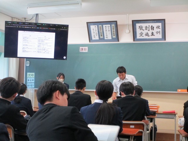 5月1日(金)の「生徒総会」に向けて生徒会執行部、各委員会の活動計画について各クラスの学級代表、委員による説明が行われました。