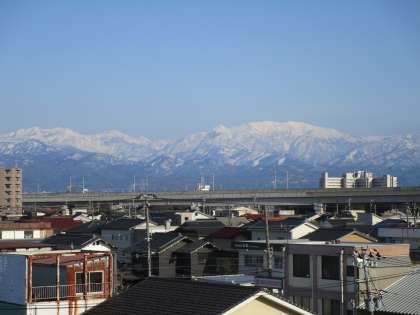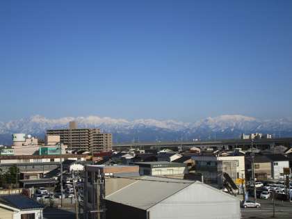 立山仰ぐ特等席 公開日 2022/04/05 更新日 2022/04/05 学校だより 4月5日(火)午前中は曇りで少し肌寒くどんよりしていましたが、午後になってからは青空が見られ、立山連峰に帯状にかかっていた雲もなくなり夕方には絶景の立山連峰がみえました。奥田中学校の4階からは、まさしく「立山仰ぐ特等席」です。新幹線も見える学校です。桜もきれいで最高です。いよいよ令和4年1学期のスタートです。