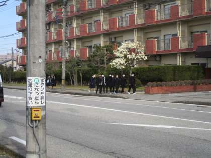 新年度スタート 朝の登校の様子 公開日 2022/04/06 更新日 2022/04/06 学校だより 新学期が始まり、生徒が登校してきました。奥田中学校前の横断歩道でさわやかな挨拶をたくさんしてくれました。表情も穏やかでいい顔をしていました。信号が短いので、足早に気を付けて横断していました。人数が多くなると信号が点滅してしまうことがありましたので前に詰めて横断すると安全なようです。通学路で危険な箇所もあるかと思います。気を付けて安全に登下校してください。