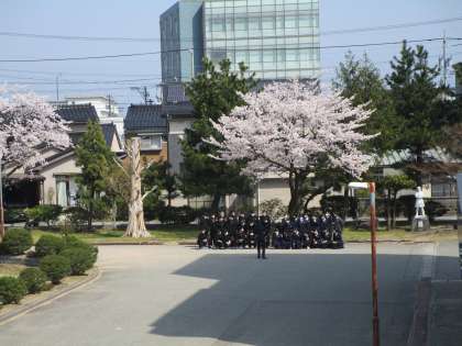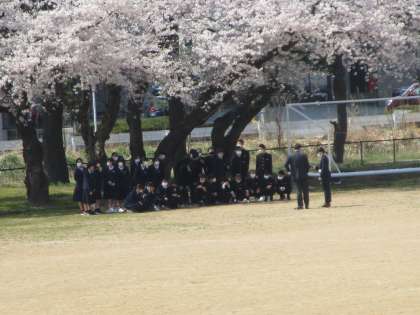 2年生、3年生の各クラスでさわやかな天候のもと、満開の桜の木の下で写真撮影をしていました。