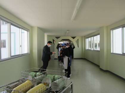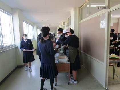 給食開始 公開日 2022/04/07 更新日 2022/04/07 学校だより 2、3年生が一足早く給食開始です。マイエプロン、三角巾で当番は消毒して、廊下で給食を配膳しています。1年生も11日(月)からです。楽しみに 本日の給食は、ごはん、牛肉と大根のごますき煮、おひたし、厚焼き卵、牛乳でした。 北給食センターの皆様、トラックの運転手さん、給食搬入員の皆様、今年もよろしくお願いします。