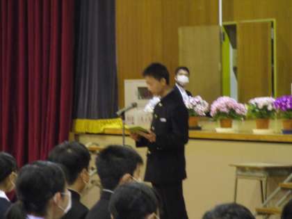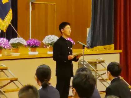 生徒会長が在校生を代表して歓迎の言葉を述べました。