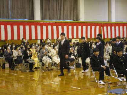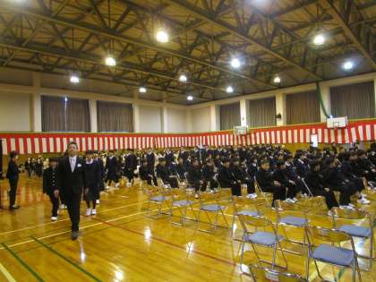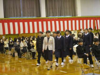 入学式を終え、来賓、保護者の前を通って堂々と退場しました。