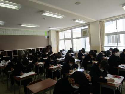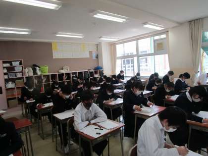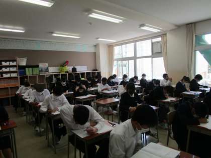 4月12日(火)2限 3年生が中教研学力調査数学に挑んでいます。