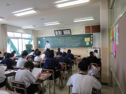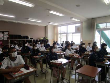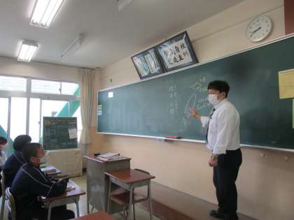 2年2組の社会は、担当の先生の自己紹介から始まり、授業のオリエンテーションが行われました。