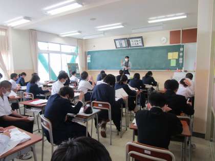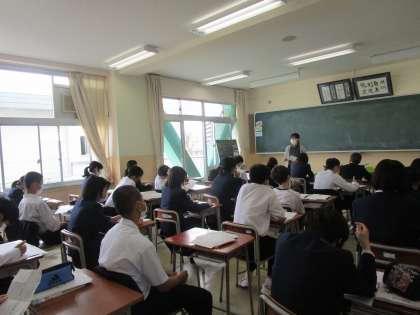 2年2組 理科 公開日 2022/04/13 更新日 2022/04/13 2学年 2年2組の理科は、一昨日の県中教研学力調査のテストが配られ、テスト解説が行われていました。解説をしっかり聞き、学習内容の定着を図りましょう。