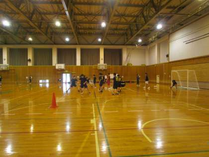 休日の部活動 男子ハンドボール部 公開日 2022/04/24 更新日 2022/04/24 部活動 4月24日(日)午前 男子ハンドボール部が体育館半面を使って練習していました。外部コーチ、顧問の先生のもとフットワークやサイドシュートの練習をしていました。
