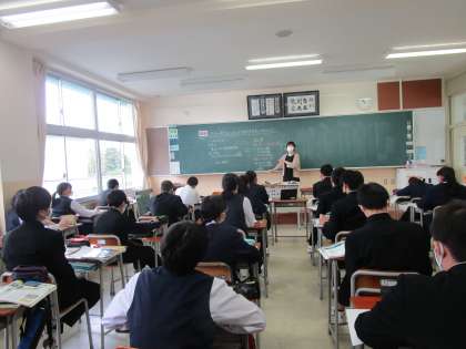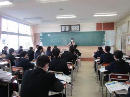 2年3組 社会 公開日 2022/04/27 更新日 2022/04/27 2学年 2年3組の社会は、「日本の国土はどんな地形的特色があるのか」という課題で学習していました。先生から地震の体験談の話を興味深く聞いていました。