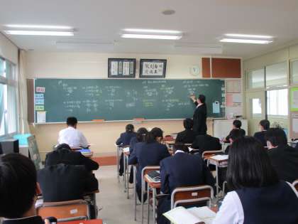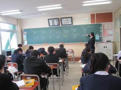 2年6組の数学は、乗法と除法の混じった計算をしていました。黒板いっぱいに板書されていました。