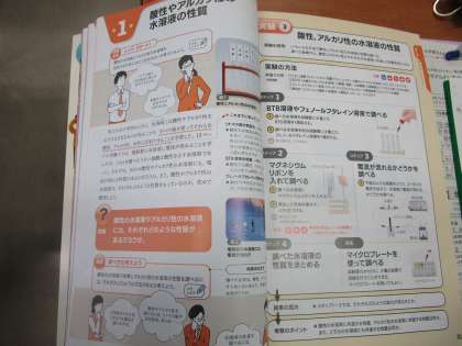 3年6組の理科、酸性とアルカリ性の水溶液の性質について学習していました。