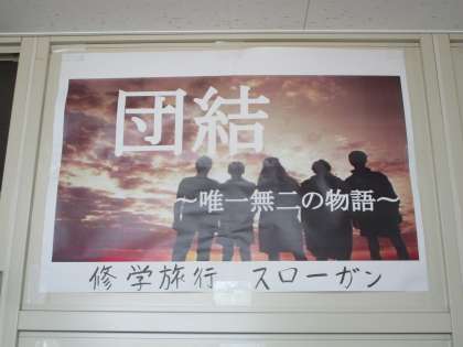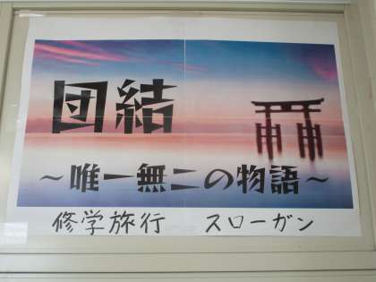 今は体育大会に向けていよいよですが、秋の修学旅行に向けての準備も着々と準備していました。修学旅行のスローガンは修学旅行実行委員がクロムブックで製作しました。