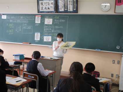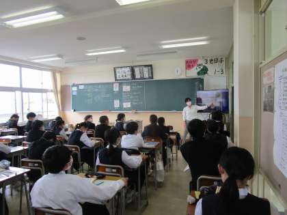 1年3組 理科 公開日 2022/05/13 更新日 2022/05/13 1学年 1年3組の理科は、「果実を作らない植物のつくりをまとめよう」という課題で松ぼっくりを例に、モニターを使いながら説明されていました。