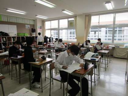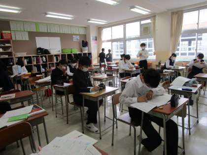 3年生の昼休みの教室の様子を見に行ったら、単元テストの勉強ですか。休みを惜しんで学習していました。さすが、3年生、すごい