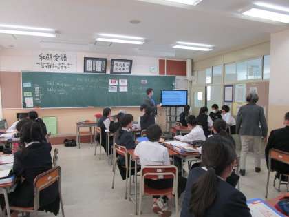 2年5組の英語は、ALTのルーカス先生との授業で、現在進行形の学習をしていました。
