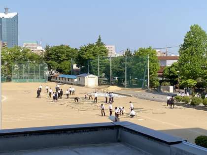 骨組みの仕分けなどの準備は、昨日のうちに野球部とサッカー部がしてくれました。