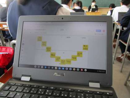 1年1組の国語は、シュンタの心情の変化をクロムブックでまとめていました。