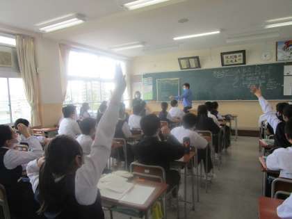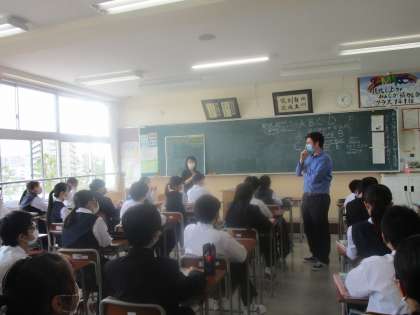 1年1組の英語もALTのルーカス先生と授業していました。表情豊かに英語を楽しんで学習していました。