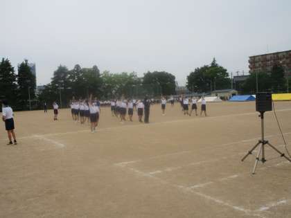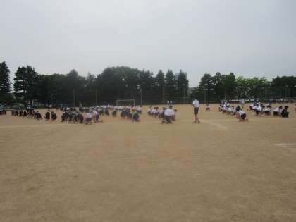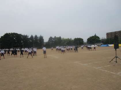 青龍団がグラウンド中央での練習です。隊形等確認しながら演技していました。