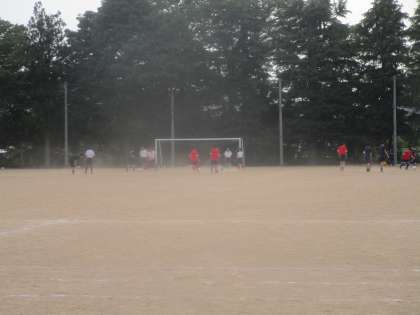 新しい赤の練習着を着て練習している生徒もいました。キーパー練習もしていました。