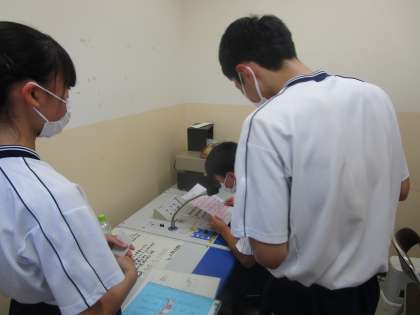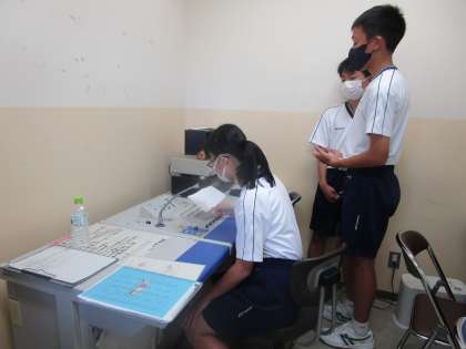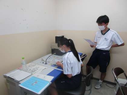 昼休みの放送で体育大会の意気込みを団長が述べました。今日は赤豹団と白虎団の団長のいきごみでした。