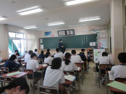 3年生 授業の様子 公開日 2022/05/24 更新日 2022/05/24 3学年 体育大会のため、先生も生徒も体育服で授業を受けています。体育大会の間の授業も怠らず、みんな頑張って授業に取り組んでいました。さすが、3年生!