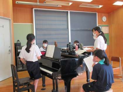 放課後の部活動 音楽部 公開日 2022/05/24 更新日 2022/05/24 部活動 音楽部がNコンの課題曲を練習していました。 はじめはパートごとに分かれて、最後には全員で合わせて、3年生や2年生のリーダー中心に、丁寧に音を合わせていました。 夏のコンクールに向けて、仕上がりが楽しみです!