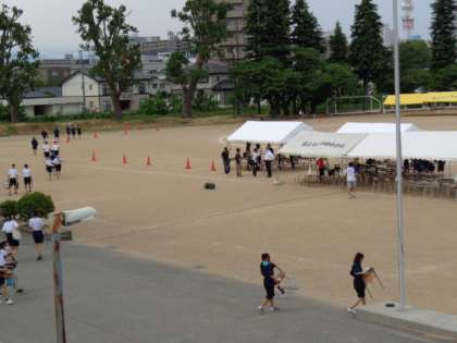 体育大会 準備 公開日 2022/05/26 更新日 2022/05/26 学校だより 団ごとにテントへ椅子を持って移動しています。予定どおりに体育大会を行う準備をすすめています。 昨日の予行練習では、プログラムがスムーズに進みました。今日も予定の時刻より20分程度早まることが予想されますので、早めのご来校をお願いいたします。