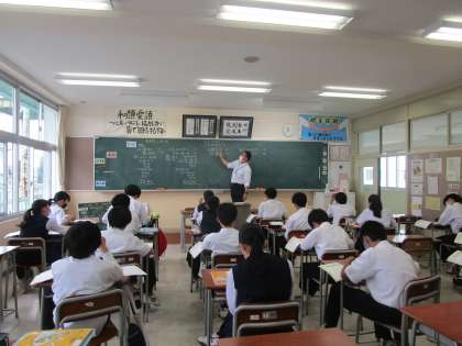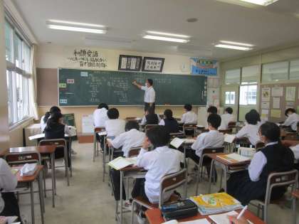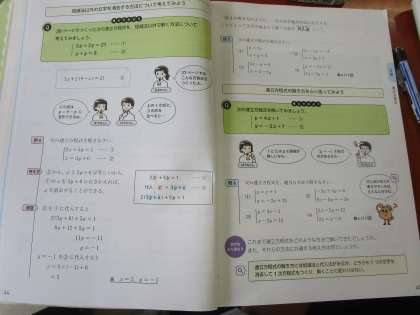 2年4組の数学は、「加減法と代入法」について学習していました。