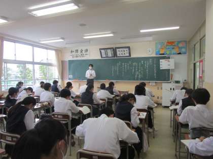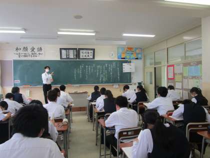 2年1組の国語は、「クマゼミ増加の原因を探る」という課題で、調査、仮説、考察の流れを学習していました。