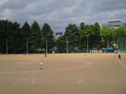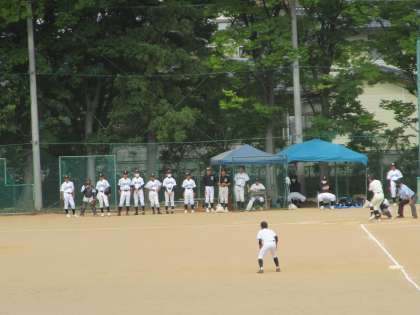 野球部が奥田中学校グラウンドで練習試合です。大会2週間前で実践で最終確認です。