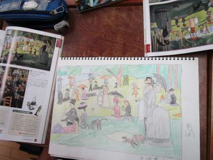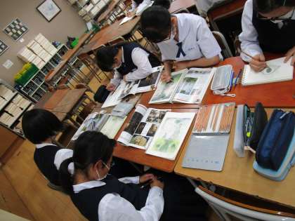 放課後の部活動 美術部 公開日 2022/06/08 更新日 2022/06/08 部活動 1年生は、有名な画家の絵を写す練習に取り組んでいました。 同じ絵から写しても、構図や色使いなどがひとりひとり少しずつ違って、 よい勉強になりそうです!