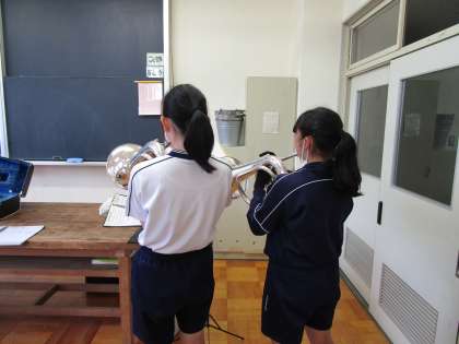 放課後の部活動 吹奏楽部 公開日 2022/06/08 更新日 2022/06/08 部活動 基礎練習や、地域のイベントに向けて曲練習をしていました。 ガードは、2年生が2回転キャッチに挑戦していました。3回転キャッチも簡単に成功させている先輩がとてもかっこよかったです。 吹奏楽部は、夏には納涼祭や演奏会に数多く参加させていただく予定です。 舞台に出られることに感謝して、練習に励んでいきましょう!